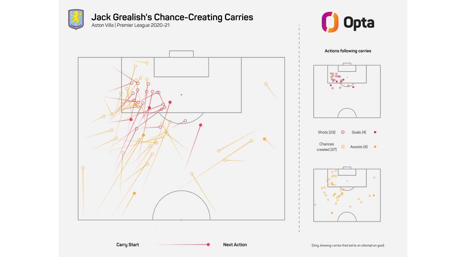 Grealish's chance-creating carries - Aston Villa PL 2020/21